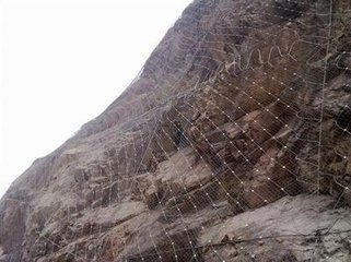 钢柱和钢丝绳网连接组合构成一个整体,对所防护的区域形成面防护,从而阻止崩塌岩石土体的下坠,起到边坡防护作用。