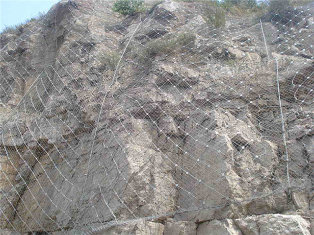 边坡防护网 作用原理上类似于喷锚和土钉墙等面层护坡体系。但因其柔性特征能使系统将局部集中荷载向四周均匀传递以充分发挥整个系统的防护能力。即局部受载,整体作用,从而使系统能承受较大的荷载并降低单根锚杆的锚固力要求 。