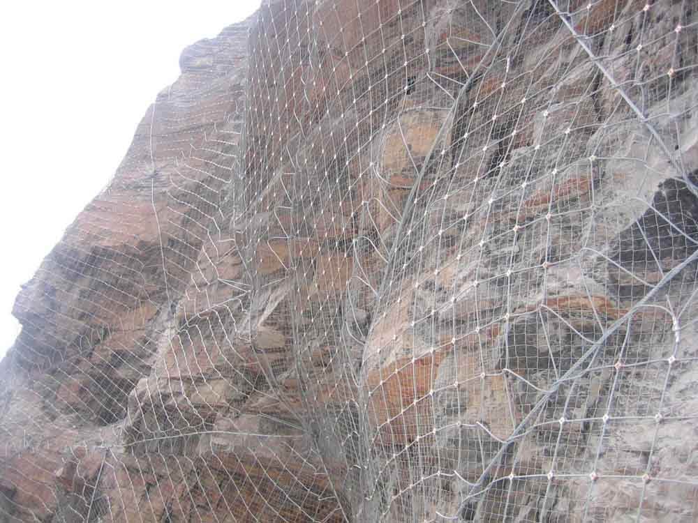 (2)铺设钢丝格栅:在钢丝绳网下方铺设钢丝格栅(2m×10m),格栅与网之间用铁丝绑扎固定。